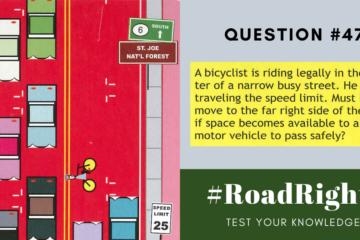 Take the quiz! The Question: The above picture shows a bicyclist riding legally in the center of a narrow busy street. They are not traveling the speed limit. Must the bicyclist move to the far right side of the lane if the space becomes available to allow a motor vehicle Read more
